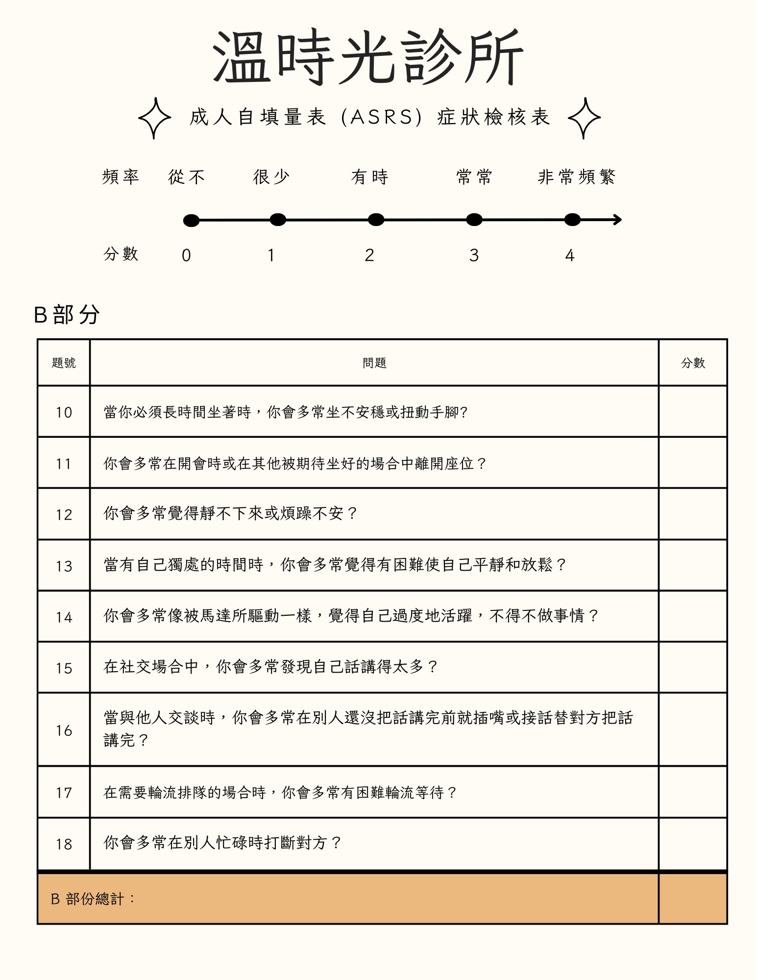 參考資料: https://www.hcp.med.harvard.edu/ncs/ftpdir/adhd/adhd/Old%20Versions/18Q-Chinese-Traditional.pdf