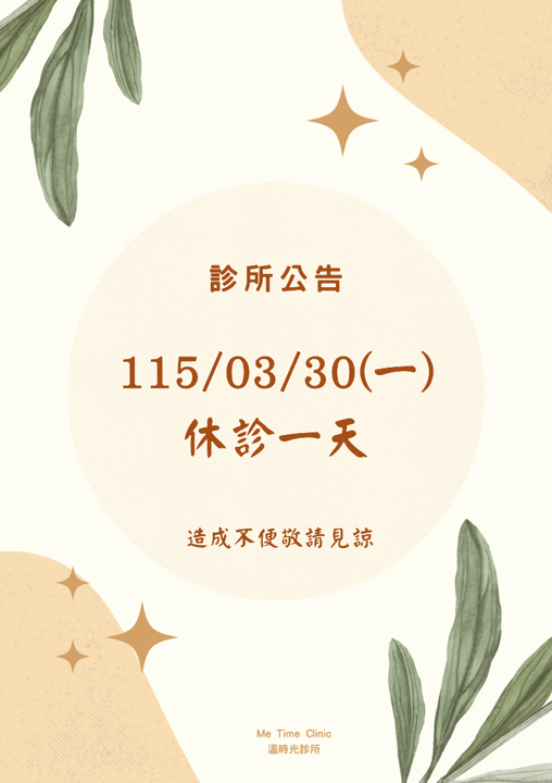 溫時光診所因故將於2026年03月30號(一)休診乙次。